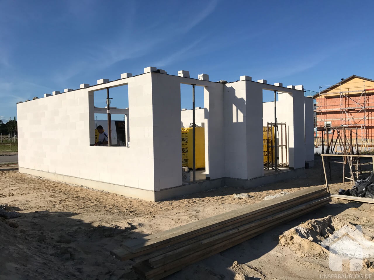 Bereits morgen Abend werden wir uns wohl etwas eingeengter fühlen, da im Laufe des morgigen Tages die Innenwände des Erdgeschosses fertiggestellt werden sollen.